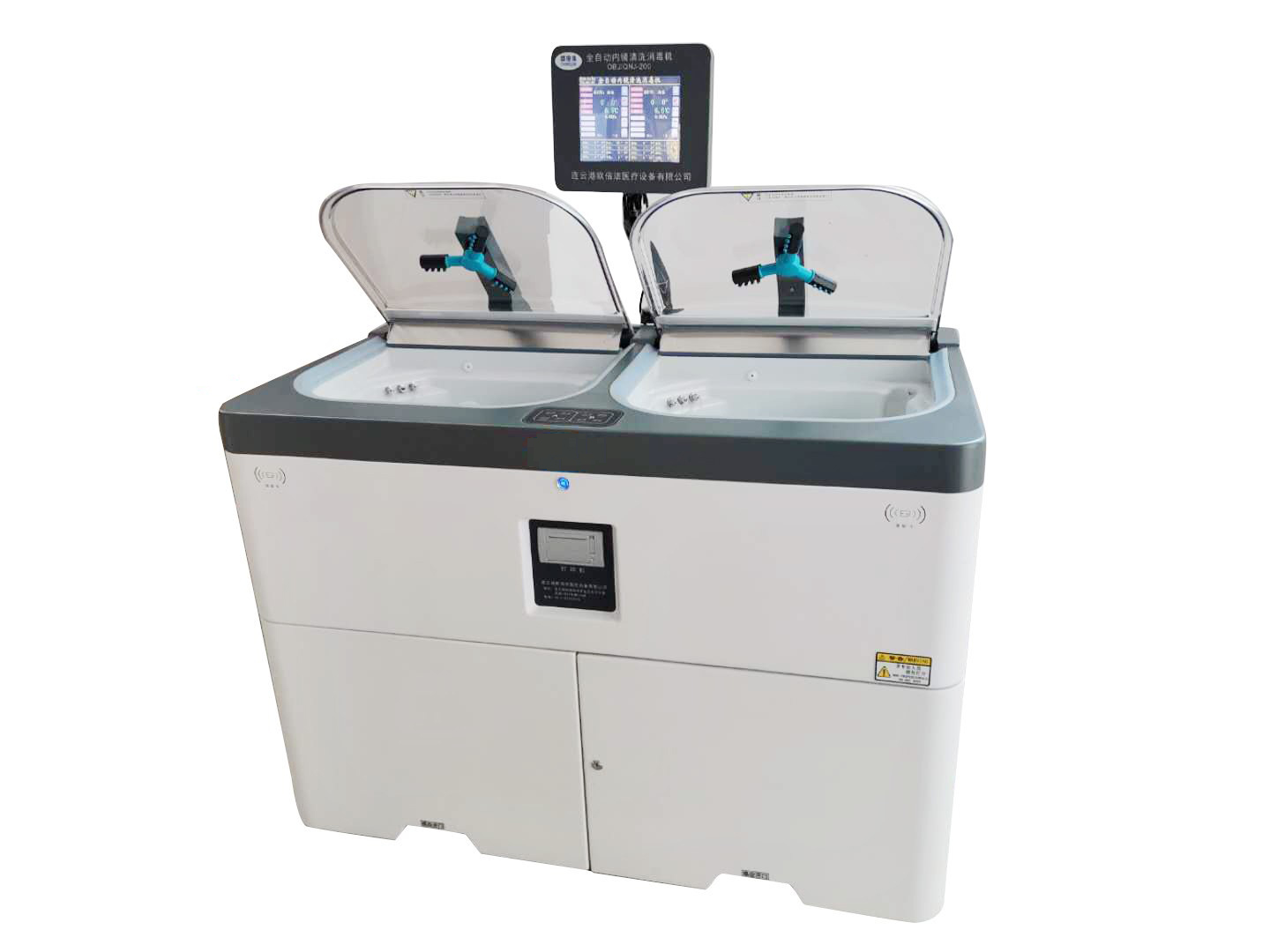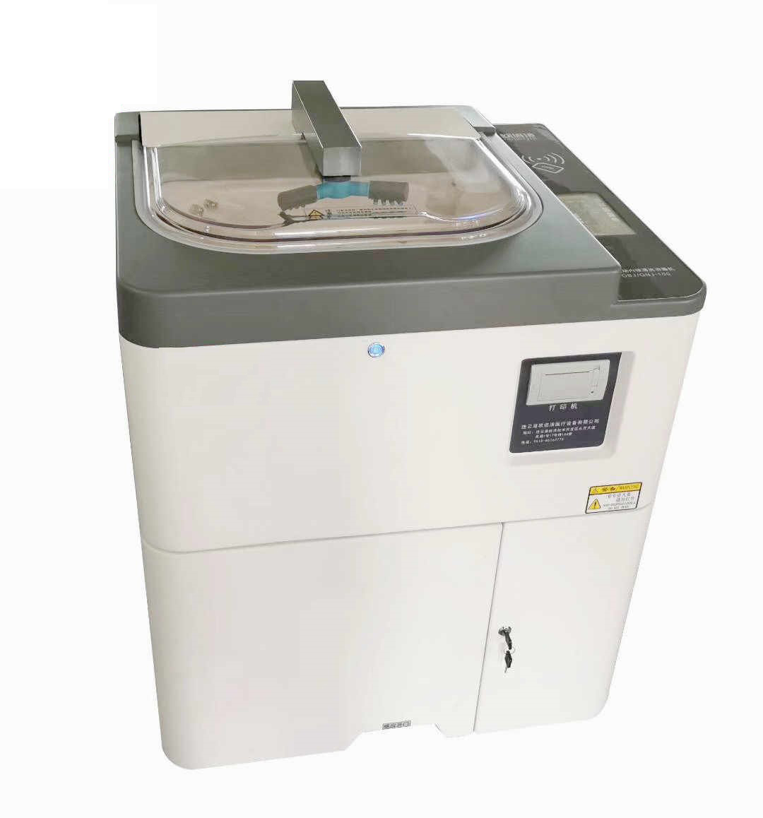 隨著內(nèi)鏡診療技術(shù)的迅速普及和不斷發(fā)展,消化內(nèi)鏡檢查已成為消化系統(tǒng)疾病診治必不可少的手段。內(nèi)鏡做為一種侵入體腔內(nèi)的儀器,所以內(nèi)鏡的材料特殊結(jié)構(gòu)復(fù)雜,不能耐高溫和高壓消毒,只能采用一些化學(xué)消毒劑浸泡,使用頻率高往往因清洗消毒時(shí)間不足等原因?qū)е孪緶缇粡氐锥l(fā)醫(yī)院感染的重要環(huán)節(jié)之一,為加強(qiáng)內(nèi)鏡清洗消毒工作,保障醫(yī)療質(zhì)量和醫(yī)療安全,國(guó)家衛(wèi)生制定了《內(nèi)鏡清洗消毒技術(shù)操作規(guī)范》,所以按照《規(guī)范》要求,認(rèn)真做好內(nèi)鏡清洗消毒規(guī)范管理,所以韻華采用全自動(dòng)內(nèi)鏡清洗消毒效果,取得良好的社會(huì)效益和經(jīng)濟(jì)效益。全自動(dòng)內(nèi)窺鏡消毒清洗機(jī),由機(jī)箱體組成,包括:上蓋,清洗消毒槽,電源開關(guān),前控制面板,機(jī)箱前門,前門把手鎖,打印機(jī),冷光源掛架;機(jī)箱體上部為清洗消毒槽,左側(cè)設(shè)有冷光源掛架,右側(cè)設(shè)有電源開關(guān);打印機(jī)和前控制面板安裝在機(jī)箱前門上方.本實(shí)用新型采用酸性氧化電位水為消毒液,機(jī)箱體選用高強(qiáng)度材料精心加工而成,堅(jiān)固耐用,不變形;清洗消毒槽采用進(jìn)口仿瓷原料一次注塑成型,表面潔白光亮,耐腐蝕,使用壽命長(zhǎng);上蓋以透明亞克力板材一次熱壓成形,透光性強(qiáng),不易變色,發(fā)暗;該機(jī)以高壓流動(dòng)水旋轉(zhuǎn)噴淋和消毒液循環(huán)噴淋浸泡相結(jié)合,配合水洗,酶洗,酒精沖洗內(nèi)管道,吹干等工序自動(dòng)完成對(duì)內(nèi)鏡的清洗消毒。